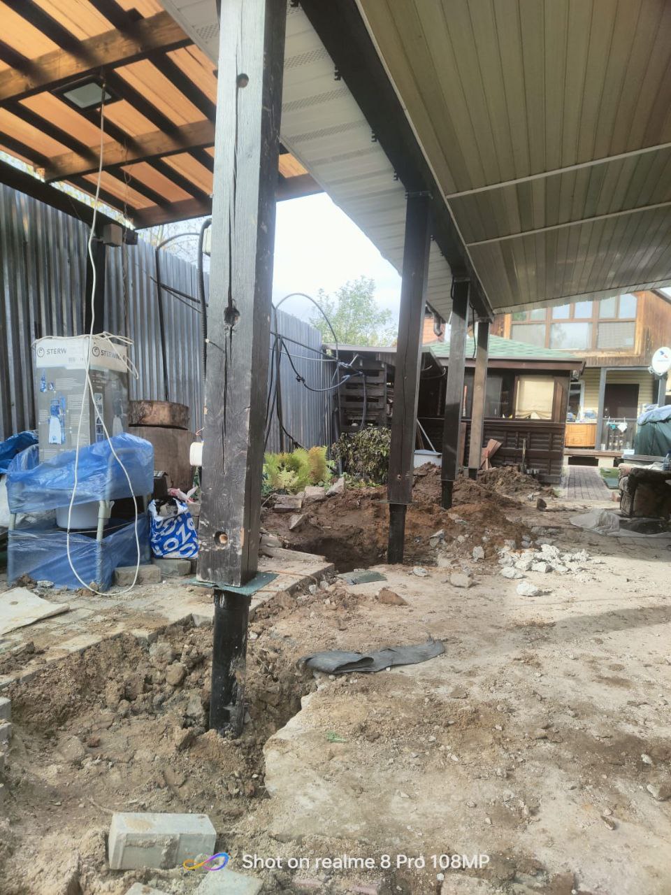 Пример работы компании "Сваекрутов": замена бетонных опор под автомобильным навесом в Подольске